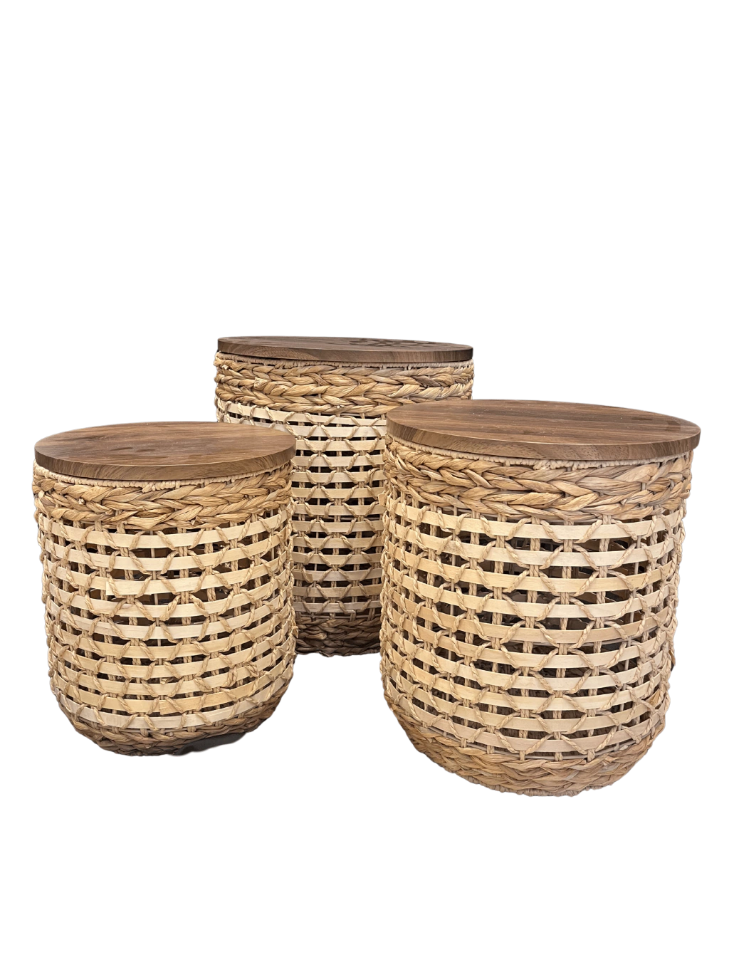 Disponible en tres tamaños (Chico, Mediano y Grande) o en Set Completo, es perfecta como mesa auxiliar, de café o como detalle decorativo. Su estilo atemporal se adapta tanto a ambientes modernos como rústicos o bohemios, sumando personalidad y funcionalidad a tus ambientes.